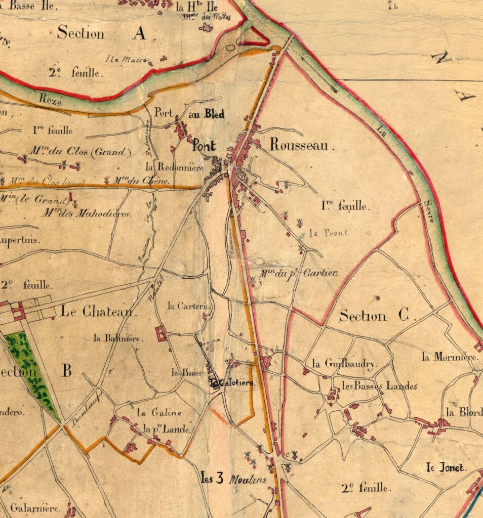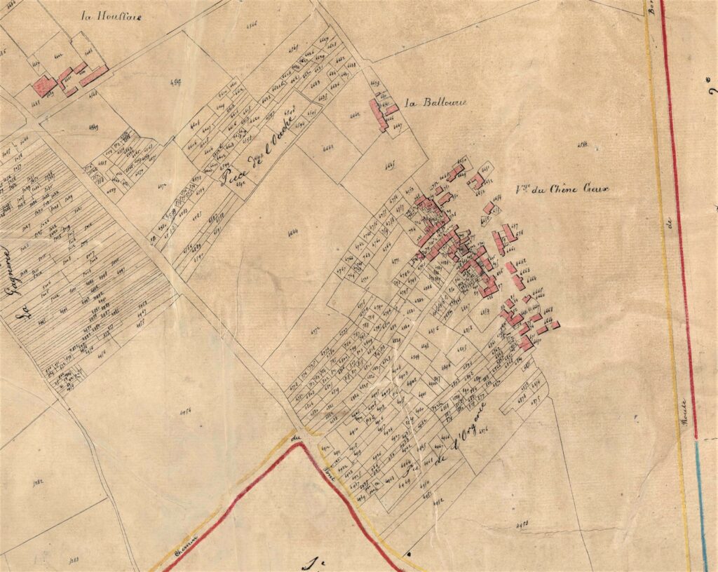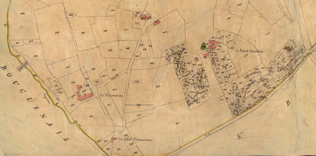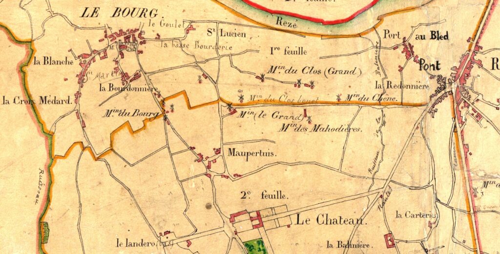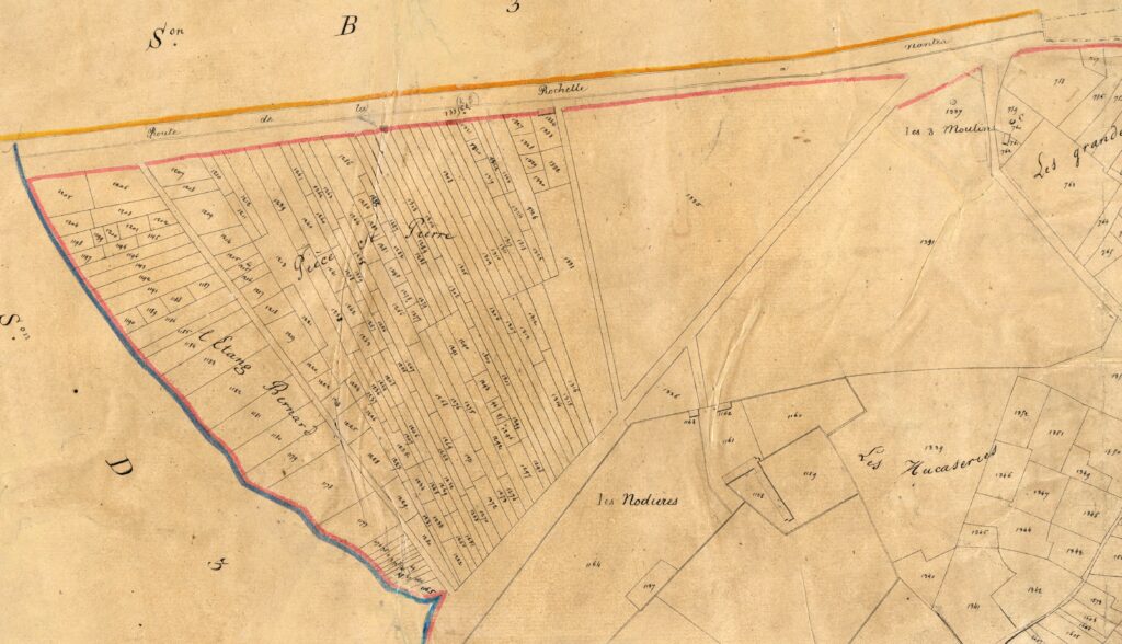 Entre le bourg et Pont Rousseau, plus précisément entre Saint Lupien et le Port au Blé, ou entre les ruisseaux du Landreau et de la Balinière, le parcellaire est très découpé, sauf la grande parcelle du Grand Clos et la poudrerie Ruggieri. Sur ces vastes parcelles viendront des groupes d’immeubles en 1960 et 1970.
