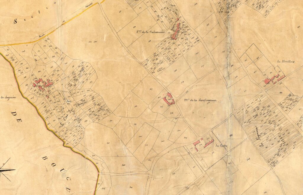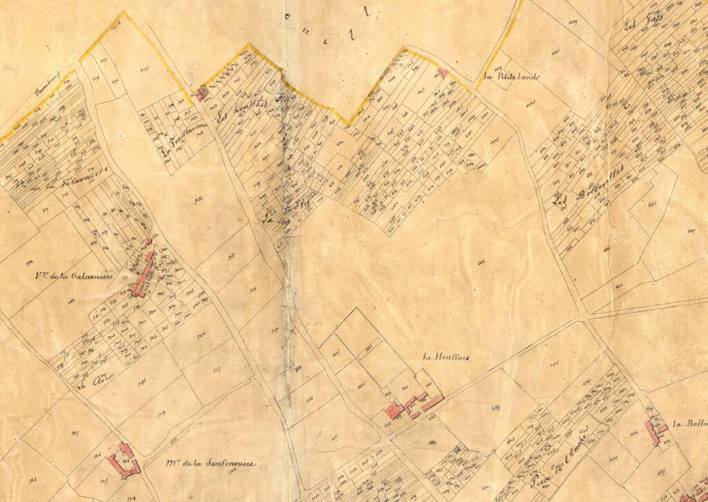 La terre est aussi semi morcelée sur les Mahaudières, à l’est de Mauperthuis, vieille implantation rurale antérieure à l’arrivée des de Monti.