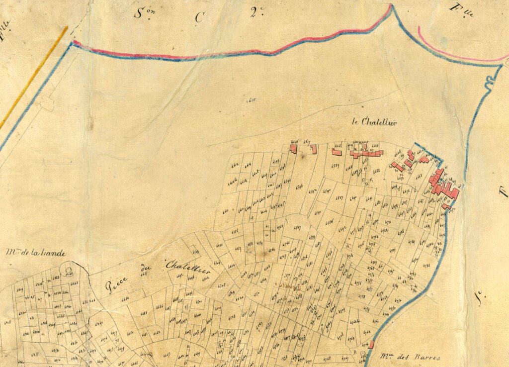 La lande du Chatellier occupe tout le territoire des rues Blanchet, du Château d’eau, jusqu’à la rue du Moulin Guibreteau, lequel est dénommé moulin de la Lande. Le territoire est morcelé, signe d’une forte activité agricole.