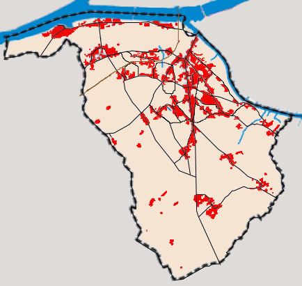 Sous l’Ancien Régime, n’existent que le bourg, le carrefour de Pont Rousseau, les maisons de pêcheurs des îles et quelques hameaux ruraux Chêne Creux, Chapelles. Dans la deuxième moitié du XIX ème siècle, Pont Rousseau s’étend sur toutes les grands chemins qui y convergent: route de La Rochelle, route de Machecoul et du Pellerin, rue de l’Industrie. Des maisons plus cossues complètent Trentemoult, La Haute Ile, La Basse Ile et Norkhiouse. Le bourg et la Blanche ne bougent pas.
